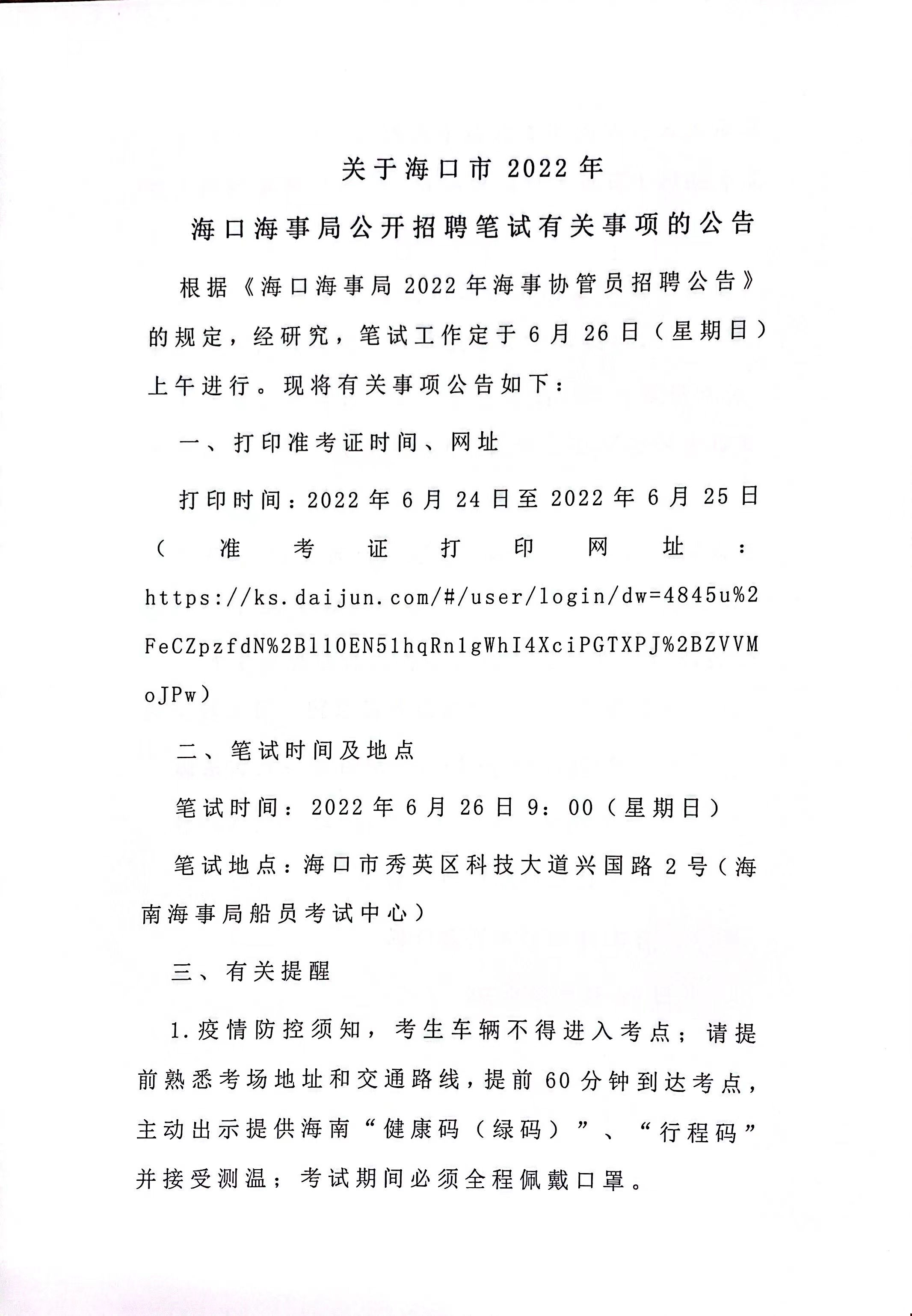 關(guān)于??谑?022年??诤J戮止_招聘筆試有關(guān)事項(xiàng)的公告